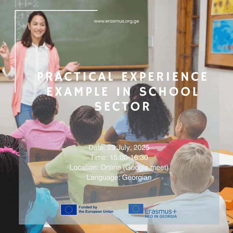 Erasmus+-ის ეროვნული ოფისი საქართველოში გეპატიჟებათ ვებინარზე “პრაქტიკული გამოცდილების მაგალითი სკოლის სექტორში”!