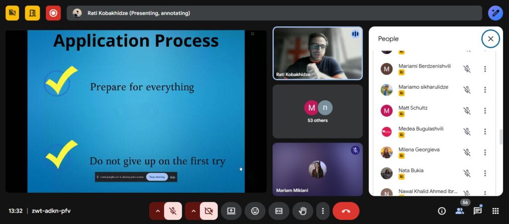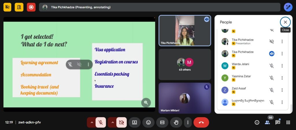 მონაწილეებმა მიიღეს ინფორმაცია ახალგაზრდული მობილობის, საერთაშორისო კრედიტების მობილობისა და Erasmus Mundus-ის ერთობლივი სამაგისტრო (EMJM) პროგრამების შესახებ. მათ ასევე მიიღეს ღირებული ინფორმაცია Erasmus Mundus-ის სტიპენდიისთვის ძლიერი და კონკურენტუნარიანი განაცხადის შექმნის შესახებ.